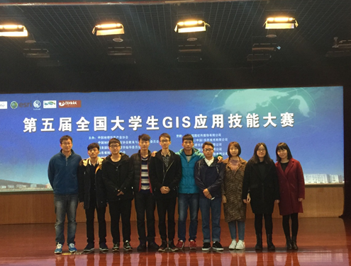 2016年11月3-5日,“第五届全国大学生GIS应用技能大赛”,在中国石油大学(华东)举行,永利官网周侗、陶菲老师指导,梁应敏、康天乐、张硕、王雨晗、朱振浩、秦琪、邹晨亮、孔德宇等8名同学组成的两支代表队参加了该项赛事,经过一天的角逐,喜获二等奖、三等奖各1项。