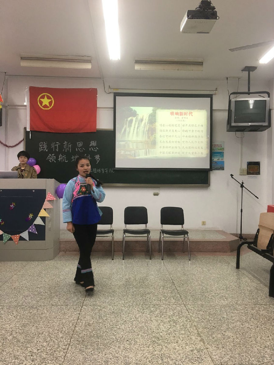 4月24日下午,为认真贯彻党的十九大及两会精神,304永利集团官网入口地理师范171和自然地理环境171团支部合力举办“践行新思想,领航地科梦”主题团日活动,用话剧的形式,将党领导下新中国的变化生动地呈现在大家面前。通过爷孙俩的贵州之行,带领大家体验到新中国焕然一新之感、万象更新之篇,绿水青山之念,繁荣昌盛之强。节目融合思想性、娱乐性。尤其是地理师范171布依族姑娘蒙帮湘的原创山歌《唱响新时代》,唱出了少数民族大学生对党的感恩之情。