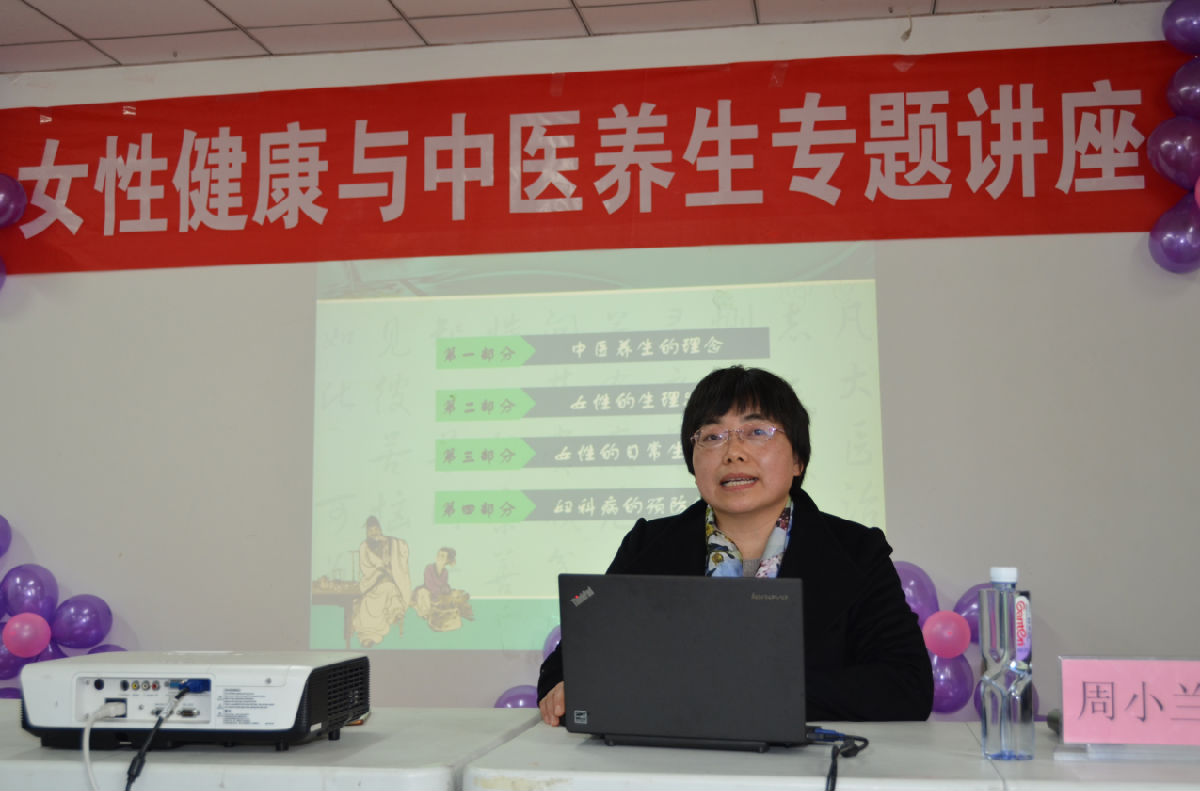 周主任从中医养生理念、女性生理特征,女性日常生活保健,妇科病的预防和调理等四个方面,通过列举生活常见事例,深入浅出的把医学知识和女性养生知识结合在一起,向大家讲述了食疗、心理、情绪调节、中医推拿等中医养生保健的方法。讲座还设置了互动交流环节,周主任现场教学,指导老师们如何迅速准确判断穴位以及一些简单易学的推拿手法,现场学习氛围高涨。潘晴雯书记就活动做了总结发言,呼吁妇女姐妹们要增强关爱自己、保护自身健康的意识,要快乐工作、健康生活,做一个由内而外美丽的新时代女性。
