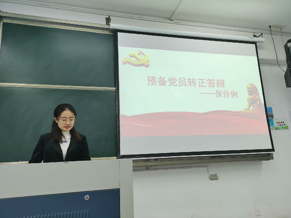 本次参加转正答辩的预备党员有6名本科生和1名研究生。答辩会分为个人陈述和现场答辩两个环节。预备党员分别就入党动机、对党的认识及预备期内个人在学习、工作、生活方面所取得的进步等进行了汇报。评委围绕党的基本理论知识、时政热点、以及预备党员预备期的表现等方面进行了询问和考察,并依据综合表现进行了现场评议。