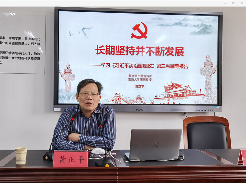 为推动对《习近平谈治国理政》第三卷的学习不断引向深入,9月23日下午,应304永利集团官网入口党委邀请,中共南通市委宣传部副部长、304永利集团官网入口兼职教授黄正平为学院党委理论学习中心组(扩大)做题为《长期坚持并不断发展》的辅导报告。报告会由学院党委书记潘晴雯主持。