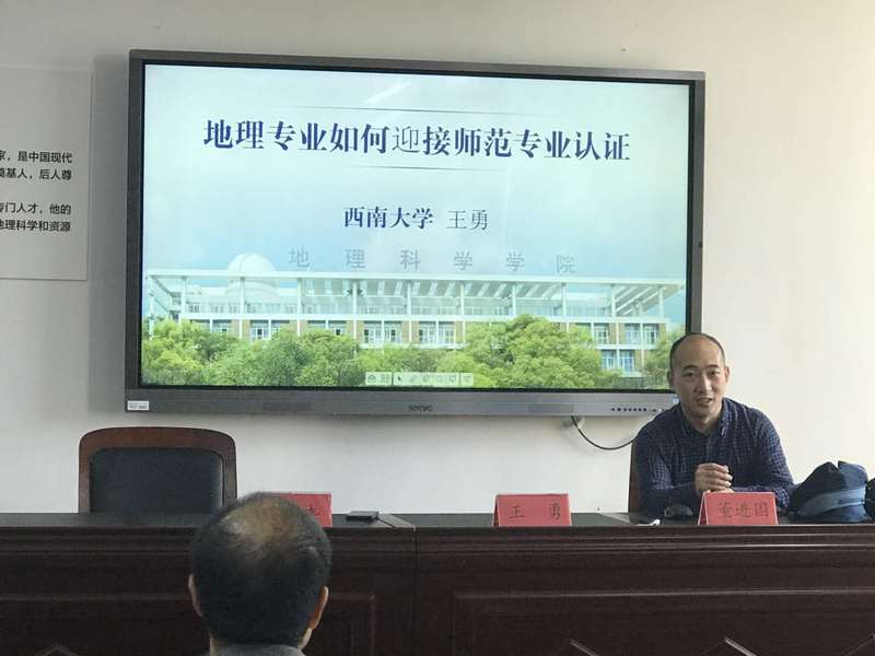 10月16-17日,西南大学304永利集团官网入口副院长王勇应邀来永利官网进行地理师范专业认证指导。蒋庆丰副院长介绍了永利官网师范专业认证的准备情况以及工作中存在的难点。地理系主任董进国主持了会议。王勇院长针对永利官网专业自评报告内容逐一进行了评析、解答和交流,并提出了指导性的建议。与会的各位老师认真听取了王勇副院长的报告,并与专家进行了热烈交流。