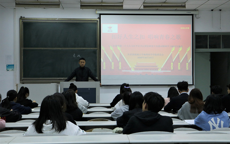 学院学工办副主任吕峰介绍了全国学联二十七大的有关情况,重点带领与会人员认真研读了《习近平致全国青联十三届全委会和全国学联二十七大的贺信》《唱响新时代爱国团结跟党走的青春之歌——在中华全国青年联合会第十三届委员会全体会议和中华全国学生联合会第二十七次代表大会上的致词》。他希望团委学生会全体成员在党的领导之下,坚定理想信念、培育高尚品格、练就过硬本领、勇于创新创造、矢志艰苦奋斗,为实现中华民族伟大复兴的中国梦贡献自己的青春力量。