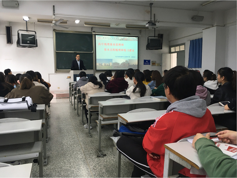 唐老师的语言幽默生动,报告气氛热烈,同学们参与热情很高。通过2个多小时的报告,同学们对高中地理基本原理和基本过程的知识体系与结构有了全面而深入的认识,相信本次报告对同学们在教师资格证笔试、面试、教学设计、模拟授课及未来的考研、考编等方面都会有很大的帮助。