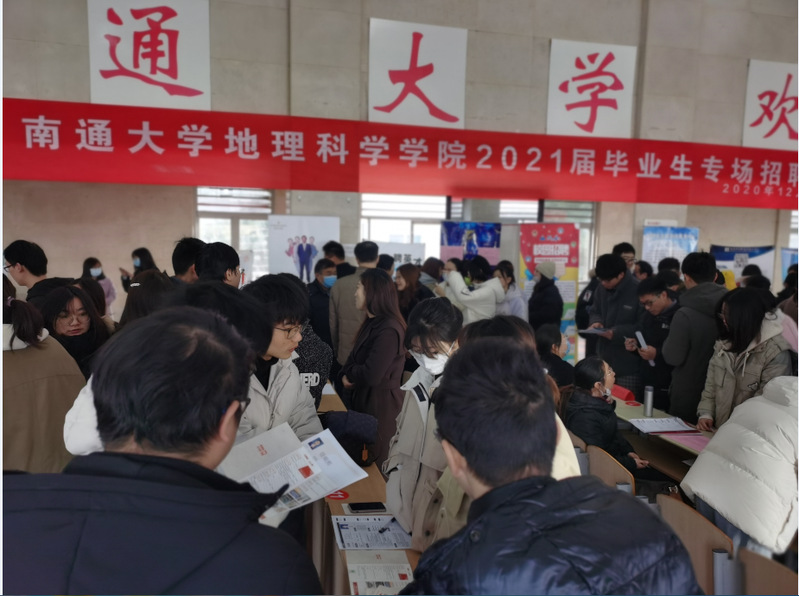 本次专场招聘会共吸引了包括南京国图信息产业有限公司、江苏京东信息技术有限公司南通分公司、南通市测绘院有限公司、南通滨江洲际酒店等将近20家公司前来招聘。招聘会上,各招聘单位向广大毕业生介绍了单位的概况及毕业生入职后的发展空间,鼓励2021届毕业生充分抓住大学期间的最后时光全面提升自己以从容应对目前相对严峻的就业形势。毕业生们踊跃递交求职简历,并就求职就业问题和招聘方进行了互动交流。