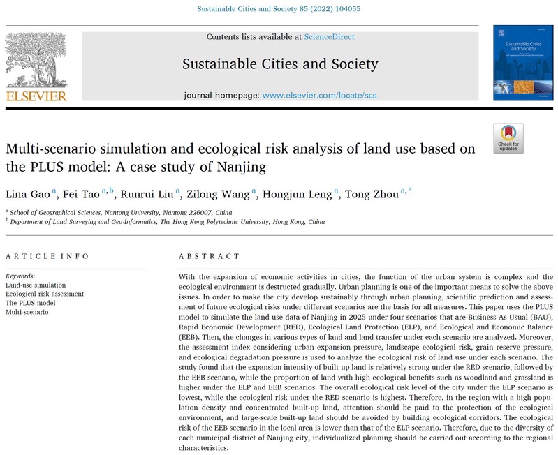相关研究成果发表在国际期刊Sustainable Cities and Society(IF=10.696,中科院一区Top)上。永利官网地理信息科学专业高丽娜同学(地理信息182)为论文第1作者,指导老师和通讯作者为永利官网周侗博士。
