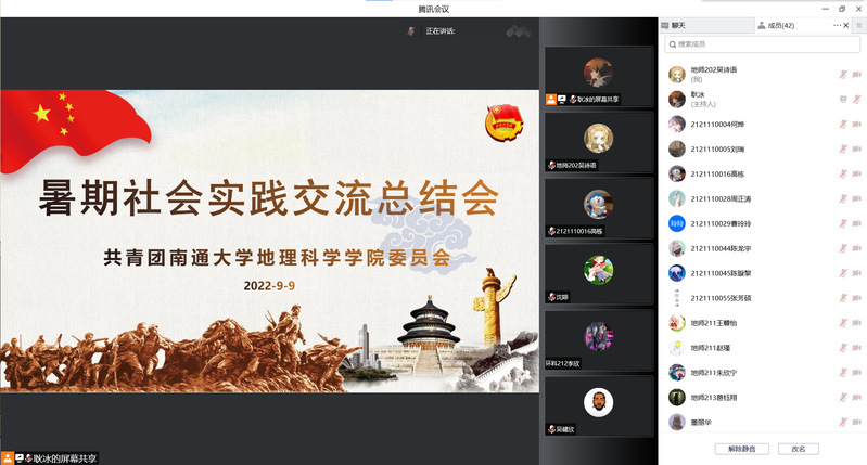 此外,美丽中国之“江豚守护计划“小分队队员、地理师范212班闫煜寒,呼伦湖生态保护小分队队员、环境科学211班焦琰雯 ,CER成就绿岛小分队队员、地理师范211班王馨怡分别分享了参与此次暑期社会实践活动的活动经历和心得感悟。