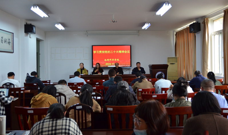 学院党委书记潘晴雯做了题为《深入学习党的二十大精神 努力加快建设美好地科院》的辅导报告,介绍了党的二十大基本情况,并着重就二十大报告的15个主体内容做了深入解读。潘晴雯要求,全院上下要充分认识党的二十大的重大意义,把学习好、宣传好、贯彻好党的二十大精神作为当前和今后一个时期的首要政治任务。要通过学习,牢牢把握过去5年工作和新时代10年伟大变革的重大意义, 牢牢把握新时代中国特色社会主义思想的世界观和方法论,牢牢把握以中国式现代化推进中华民族伟大复兴的使命任务,牢牢把握以伟大自我革命引领伟大社会革命的重要要求,牢牢把握团结奋斗的时代要求。要通过学习,深刻领悟“两个确立”的决定性意义,增强“四个意识”、坚定“四个自信”、做到“两个维护”,始终在思想上政治上行动上同以习近平同志为核心的党中央保持高度一致,确保各项工作沿着党的二十大指引的方向坚定前行。要把学习成果体现到政治能力的提高上,体现到主观世界的改造上,体现到工作水平的提升上,深刻把握党的二十大的重要思想、重要观点、重大战略、重大举措,在学习宣传贯彻中深入领会党的创新理论的道理学理哲理,学思悟践习近平新时代中国特色社会主义思想这一解答中国之问、世界之问、人民之问、时代之问的“金钥匙”,将全院师生员工的思想和行动统一到党的二十大精神上来,凝聚到党的二十大确立的目标任务上来,把学习宣传贯彻党的二十大精神与深入学习领会习近平总书记关于教育的重要论述结合起来,与落实立德树人根本任务结合起来,以更加务实有效的工作推动党的二十大精神在学院落地生根、开花结果,以昂扬奋斗的工作姿态、卓有成效的工作实绩为建设特色鲜明的高水平大学多做贡献。