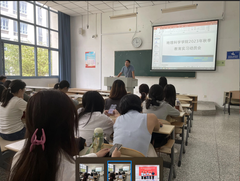 为了进一步增强师范生教学技能,落实师范生教育实习工作,2023年9月1日下午,永利官网地理科学(师范)专业20级于啬园校区1号教学楼108教室召开教育实习动员大会。本次动员会由地理系董艳老师主持,刘波副院长到会指导,系主任叶磊老师、任雪梅老师及地理科学(师范)20级全体同学参与。