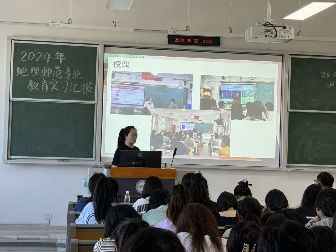 董艳老师对本次汇报会进行了总结。她表示,同学们一定程度上已经完成了从学生到老师身份的转化,在汇报过程中展现出的沟通与表达能力,与实习前相比有十分显著的进步。同时,也要向优秀的中学地理老师学习,不断总结经验,认真反思、及时查漏补缺,争做“四有好老师”。