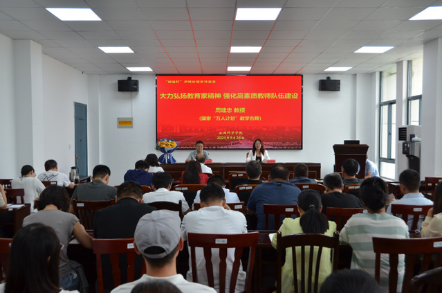 9月25日下午,304永利集团官网入口“静海轩”师德讲堂举办首场报告会,邀请国家万人计划教学名师、304永利集团官网入口原副校长周建忠教授为全体教职工做题为《大力弘扬教育家精神,强化高素质教师队伍建设》的专题报告。报告会由学院党委书记潘晴雯主持。