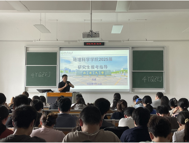 刘波副院长介绍了地理学学科的发展态势和学科潜力方向,强调了考研对个人成长和职业发展的重要性,分享了选择院校专业的指导建议;他表示,学院一直以来高度重视考研工作,积极为学生提供全方位、全流程的考研指导,为考研之路保驾护航,希望同学们坚定信心,卯足干劲,朝着考研目标勇毅前行。