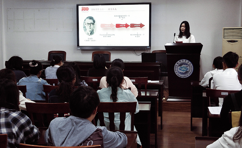 由吴琦等5名优秀学生党员组成的红色故事宣讲团,紧扣党史学习教育,采取线上、线下相结合的形式,重点讲述了南通地区第一位共产党员吴亚鲁同志的感人事迹。宣讲团成员分别从“英勇播火”“对党忠诚”“敢为人先”“勇于开拓”“顾全大局”等维度宣传介绍了吴亚鲁同志的光辉一生,结合自身的所感所悟,向学院学生党员、拟发展对象、入党积极分子进行宣讲,引导大家重温百年党史,传承红色基因,汲取奋斗力量。