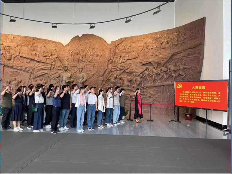 为深入学习党史,激励广大党员通过党史学习重温党的丰功伟绩,感悟党的思想伟力,把握历史发展规律,坚定革命理想信念,激发党员使命担当,营造干事创业氛围,6月20日,304永利集团官网入口党委组织全体党员教职工和新发展学生党员赴新四军黄桥战役纪念馆开展主题为“赓续红色血脉 汲取奋进力量”的党日活动。