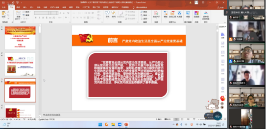 本次讲座帮助全体参训学员加深对与党内政治生活的理解,坚定理想信念,严明党的政治纪律,开展批评和自我批评;激励学员帮助周围同学共同进步,成为沟通学生、教师和学院的桥梁,积极参与学院各项活动;提醒大家认真学习各项会议精神,向成为一名真正的共产党员靠近。