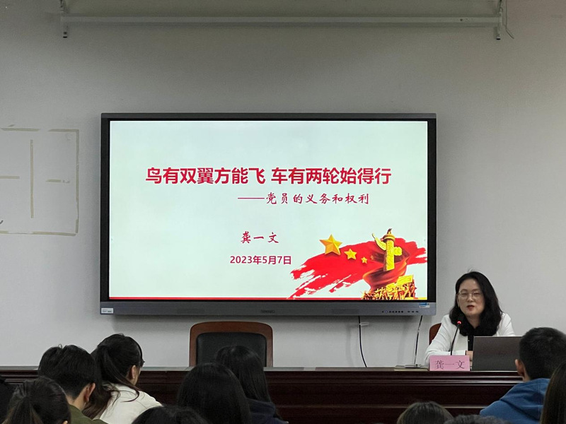 5月7日下午,永利官网党委副书记兼副院长龚一文为2023年发展对象培训班全体学员做题为《鸟有双翼方能飞,车有两轮始得行——党员的义务和权利》的专题讲座。
