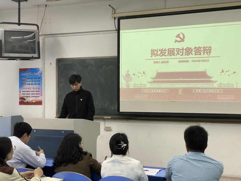 5月6日下午,304永利集团官网入口党委举行2023年上半年学生拟发展对象答辩会,14名拟发展对象进行了汇报答辩。学院党委副书记、副院长龚一文、学工办主任李宇辉、协同育人第一党支部书记叶磊、第二党支部书记胡安永及相关年级辅导员参加答辩会。答辩会由协同育人第一党支部书记叶磊主持。